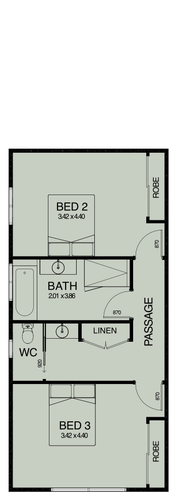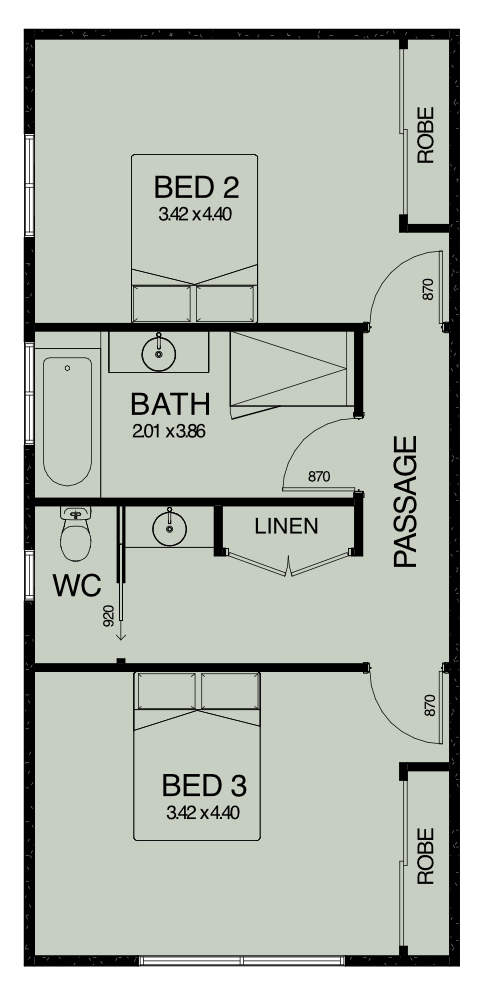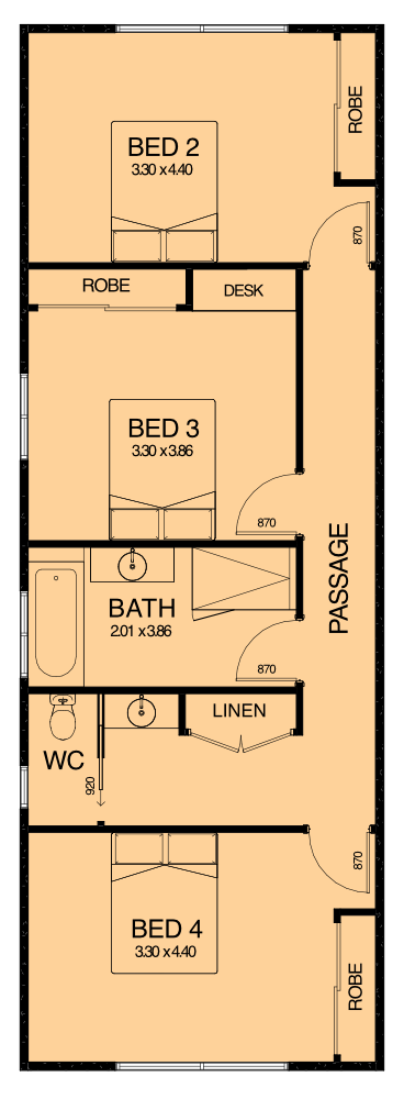 A compact bedroom wing ideal for children, housemates, or additional flexible living space.